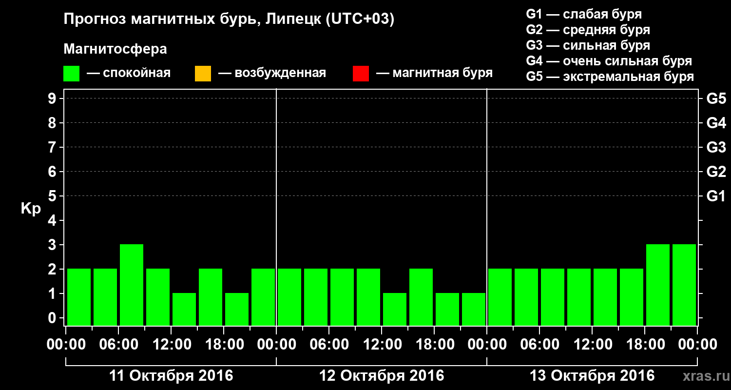 Прогноз магнитных бурь в Липецке на 11 октября 2016 года