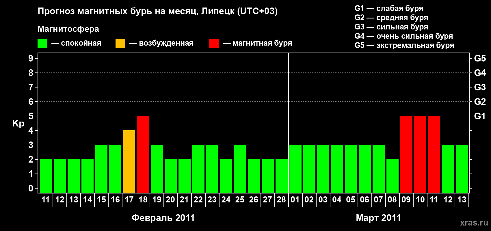 Прогноз магнитных бурь в Липецке на 11 февраля 2011 года