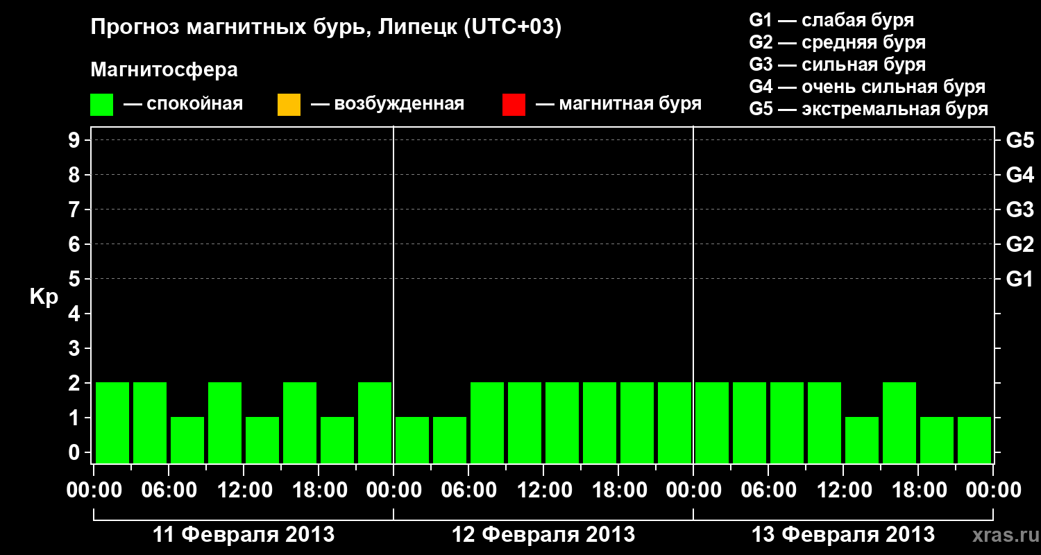 Прогноз магнитных бурь в Липецке на 11 февраля 2013 года