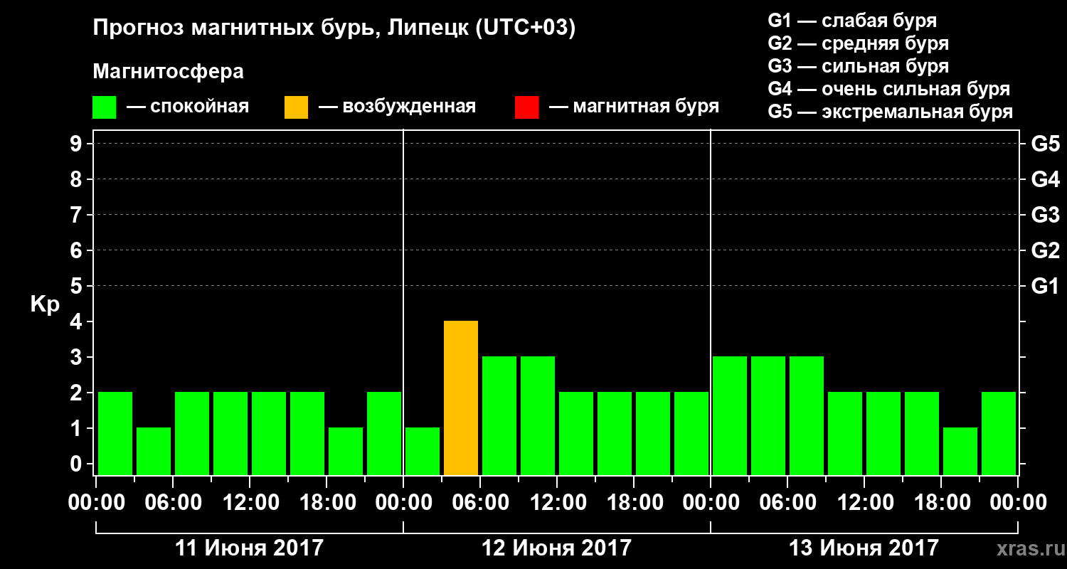 Прогноз магнитных бурь в Липецке — 11 июня 2017 года