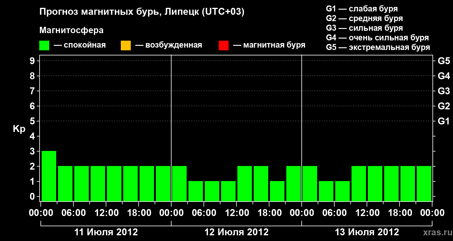 Прогноз магнитных бурь в Липецке — 11 июля 2012 года