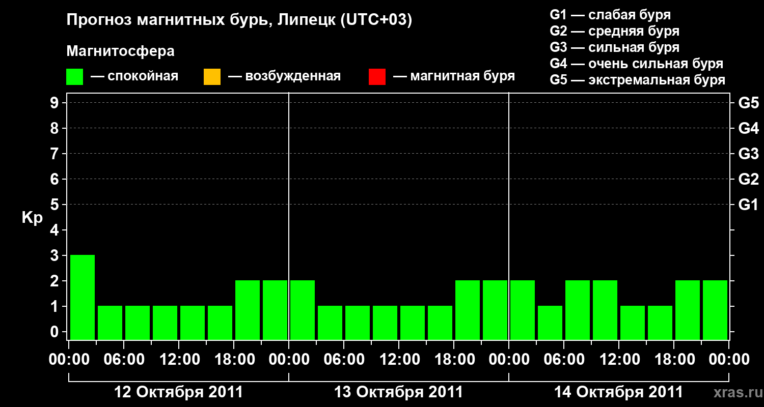 Прогноз магнитных бурь в Липецке на 12 октября 2011 года