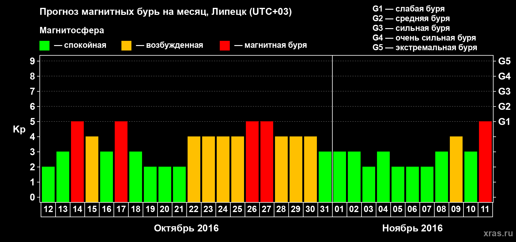 Прогноз магнитных бурь в Липецке на 12 октября 2016 года