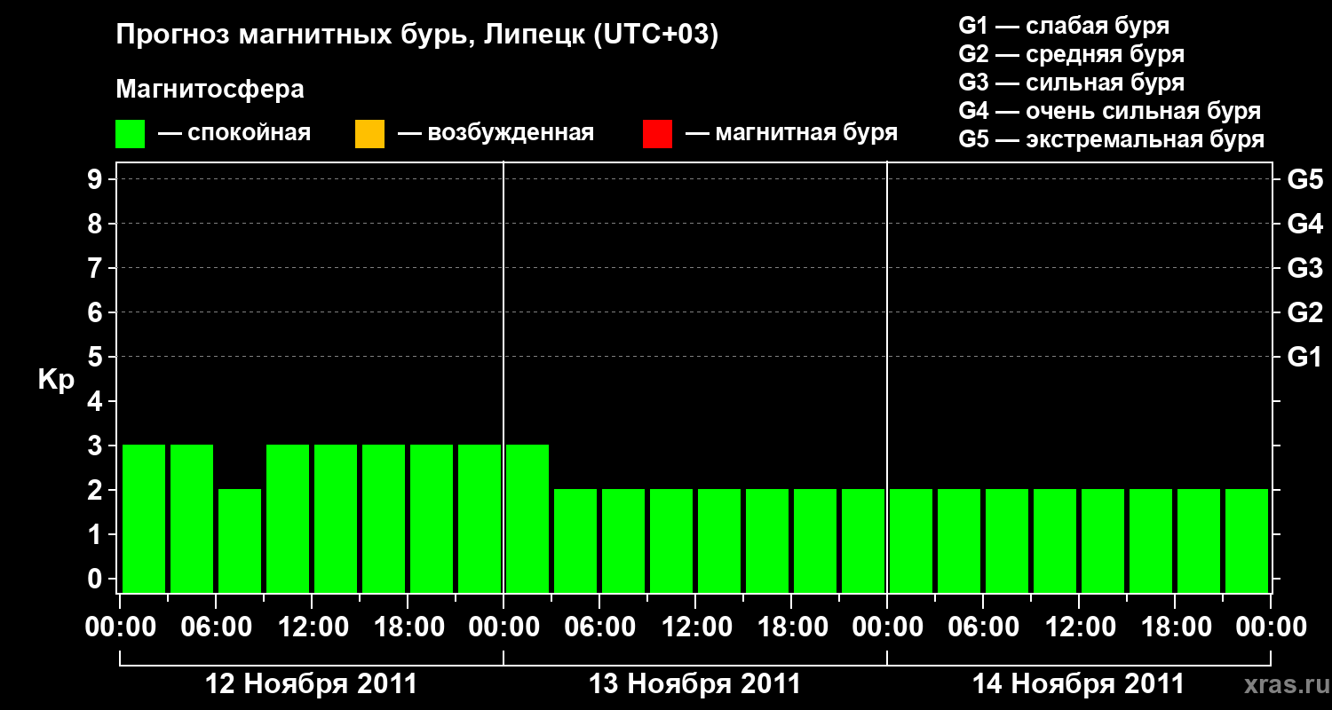 Прогноз магнитных бурь в Липецке — 12 ноября 2011 года