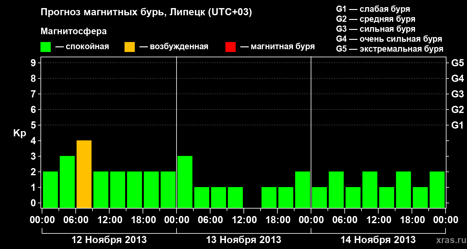 Прогноз магнитных бурь в Липецке — 12 ноября 2013 года