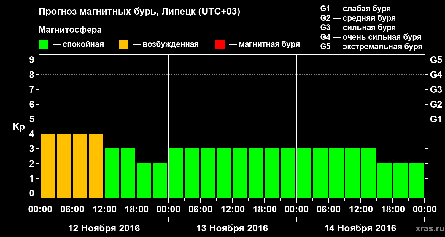 Прогноз магнитных бурь в Липецке — 12 ноября 2016 года