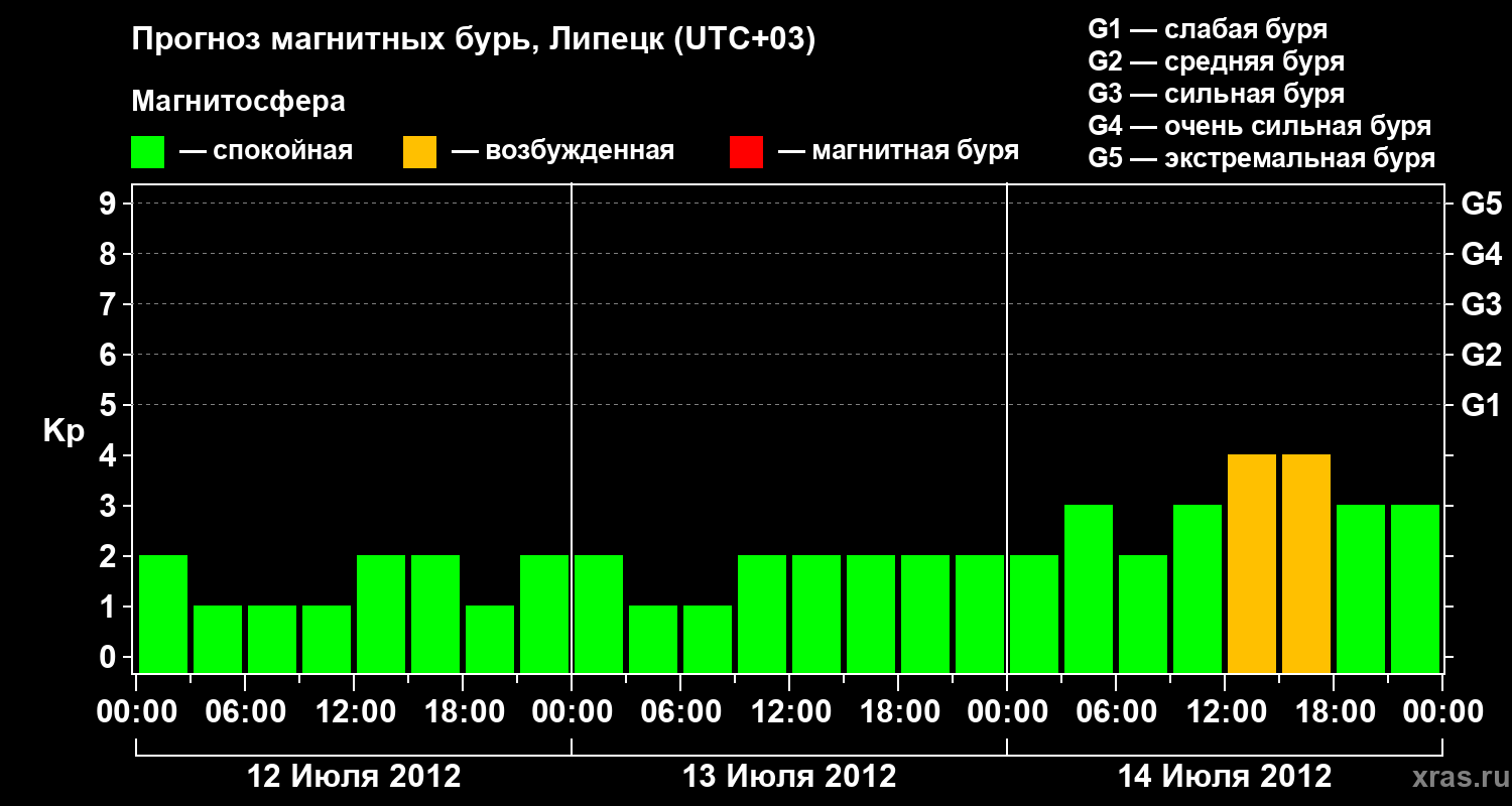 Прогноз магнитных бурь в Липецке на 12 июля 2012 года