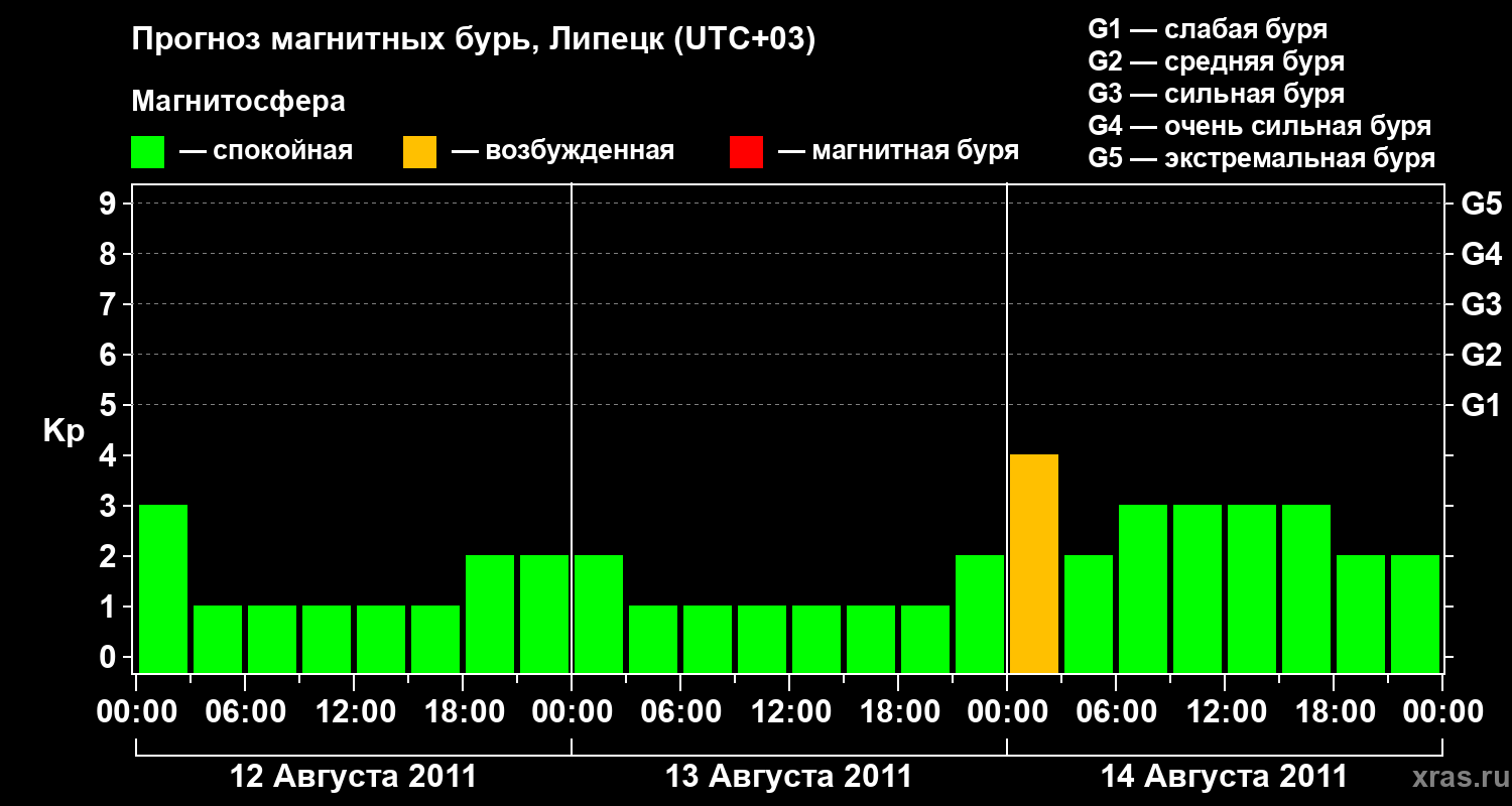 Прогноз магнитных бурь в Липецке — 12 августа 2011 года