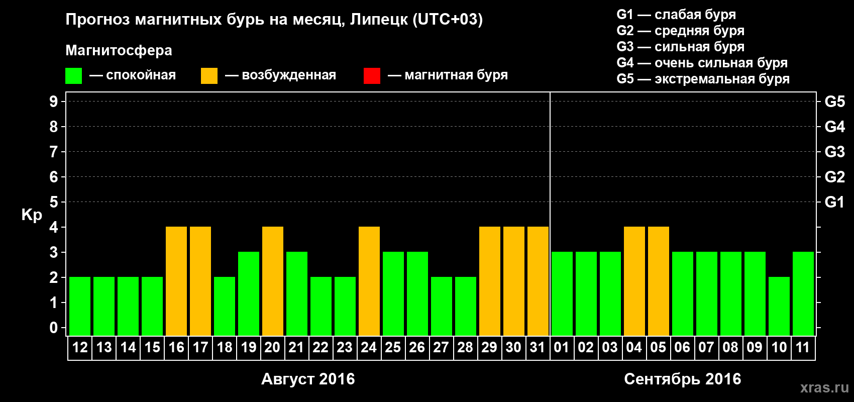 Прогноз магнитных бурь в Липецке — 12 августа 2016 года