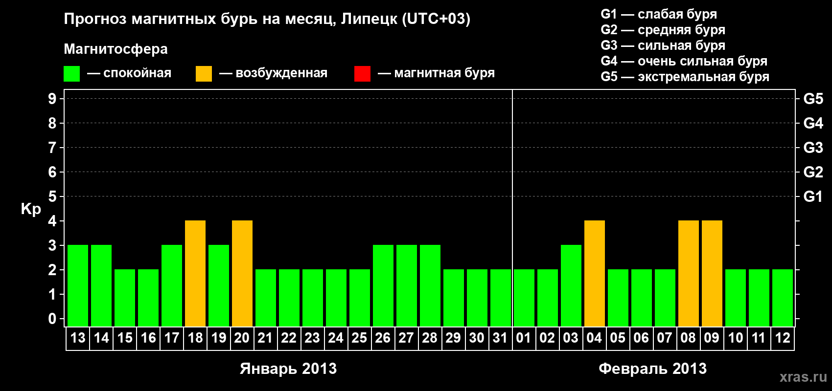 Прогноз магнитных бурь в Липецке на 13 января 2013 года