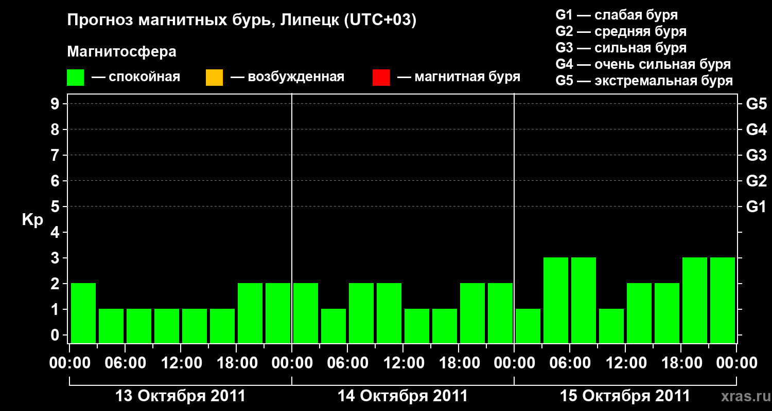 Прогноз магнитных бурь в Липецке на 13 октября 2011 года