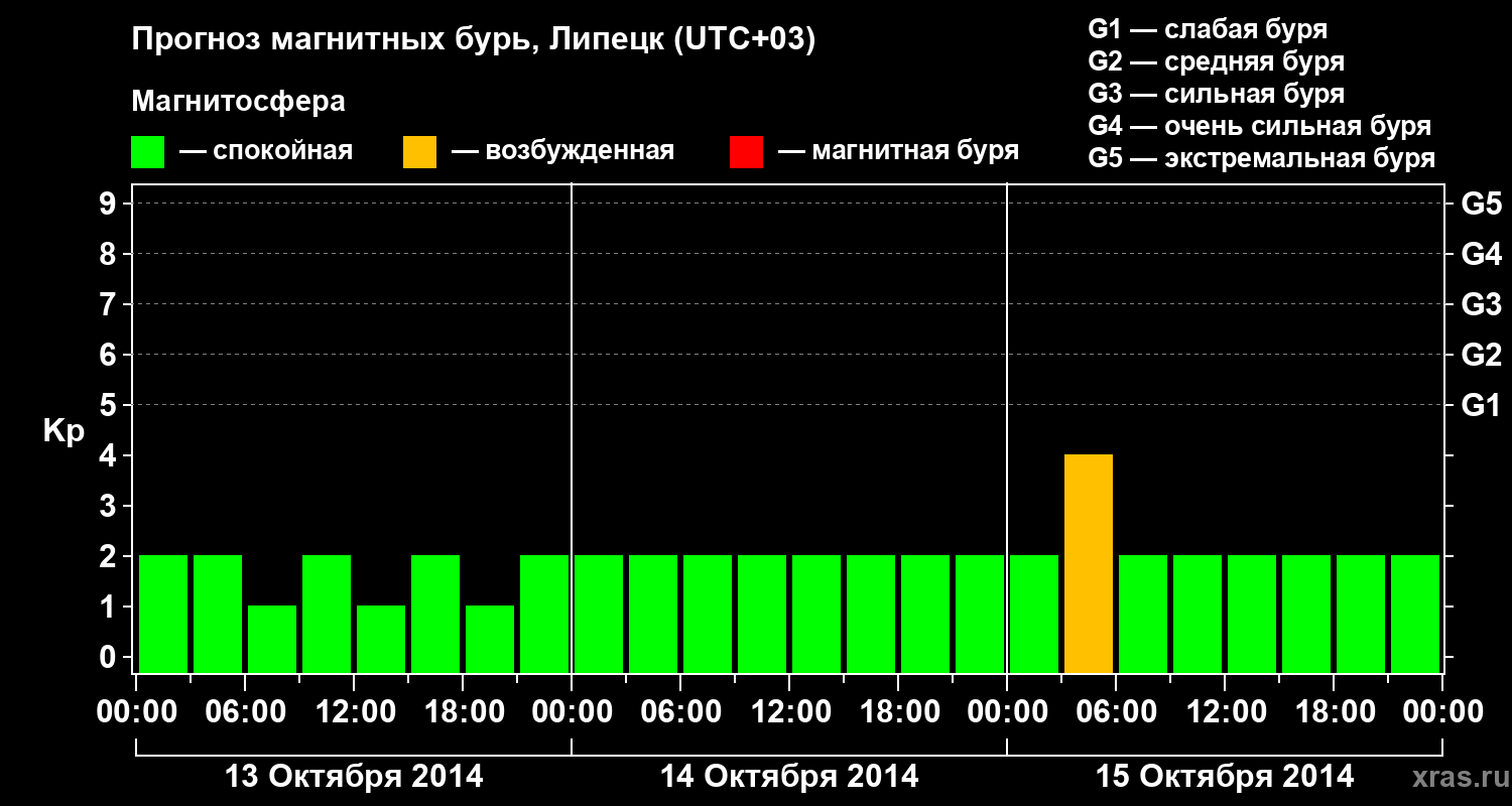 Прогноз магнитных бурь в Липецке — 13 октября 2014 года