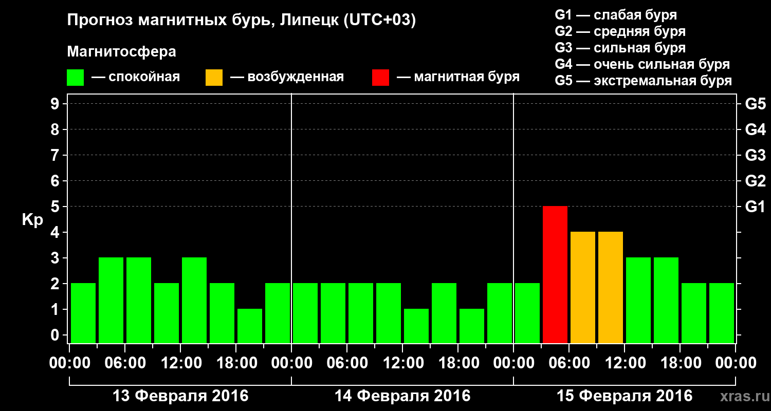 Прогноз магнитных бурь в Липецке — 13 февраля 2016 года
