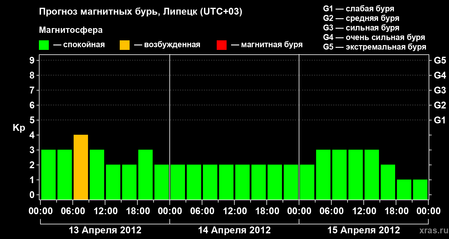Прогноз магнитных бурь в Липецке — 13 апреля 2012 года