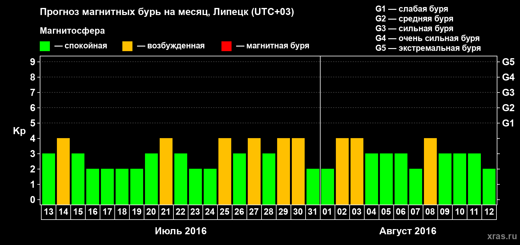 Прогноз магнитных бурь в Липецке — 13 июля 2016 года
