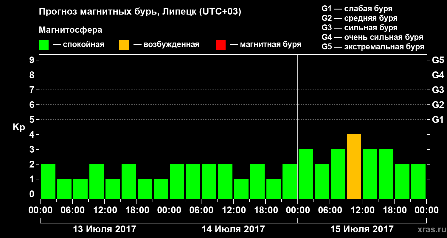 Прогноз магнитных бурь в Липецке на 13 июля 2017 года