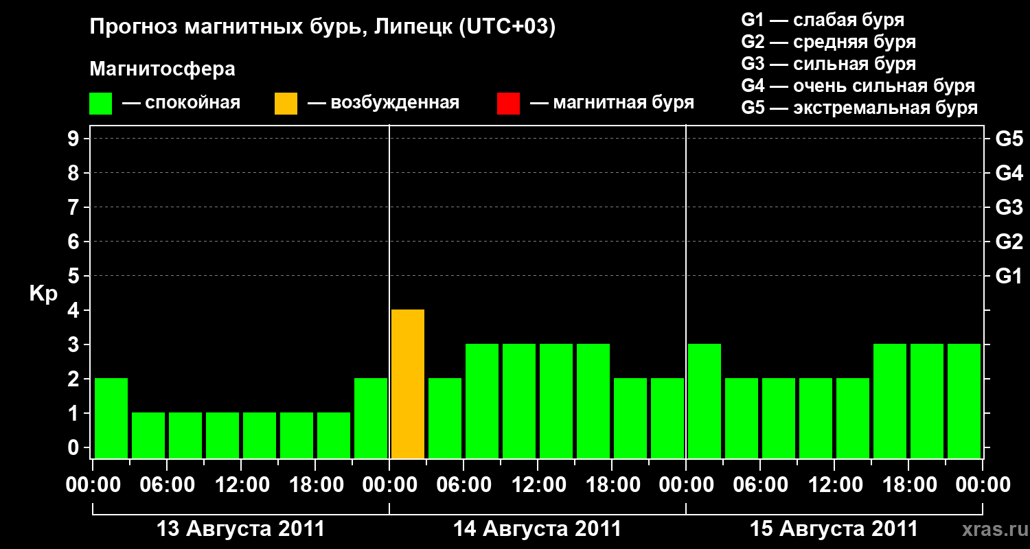 Прогноз магнитных бурь в Липецке — 13 августа 2011 года