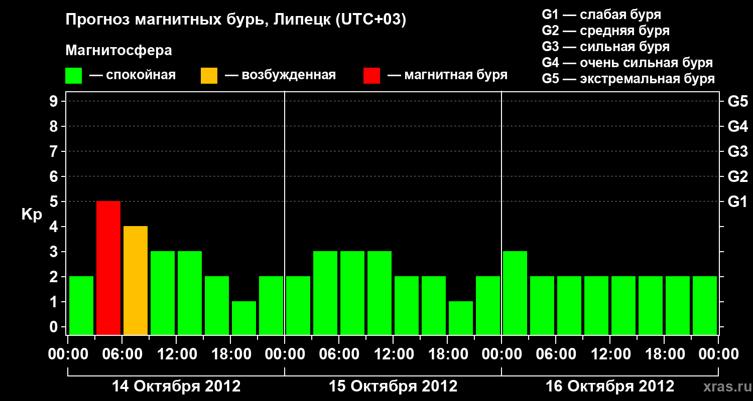 Прогноз магнитных бурь в Липецке — 14 октября 2012 года