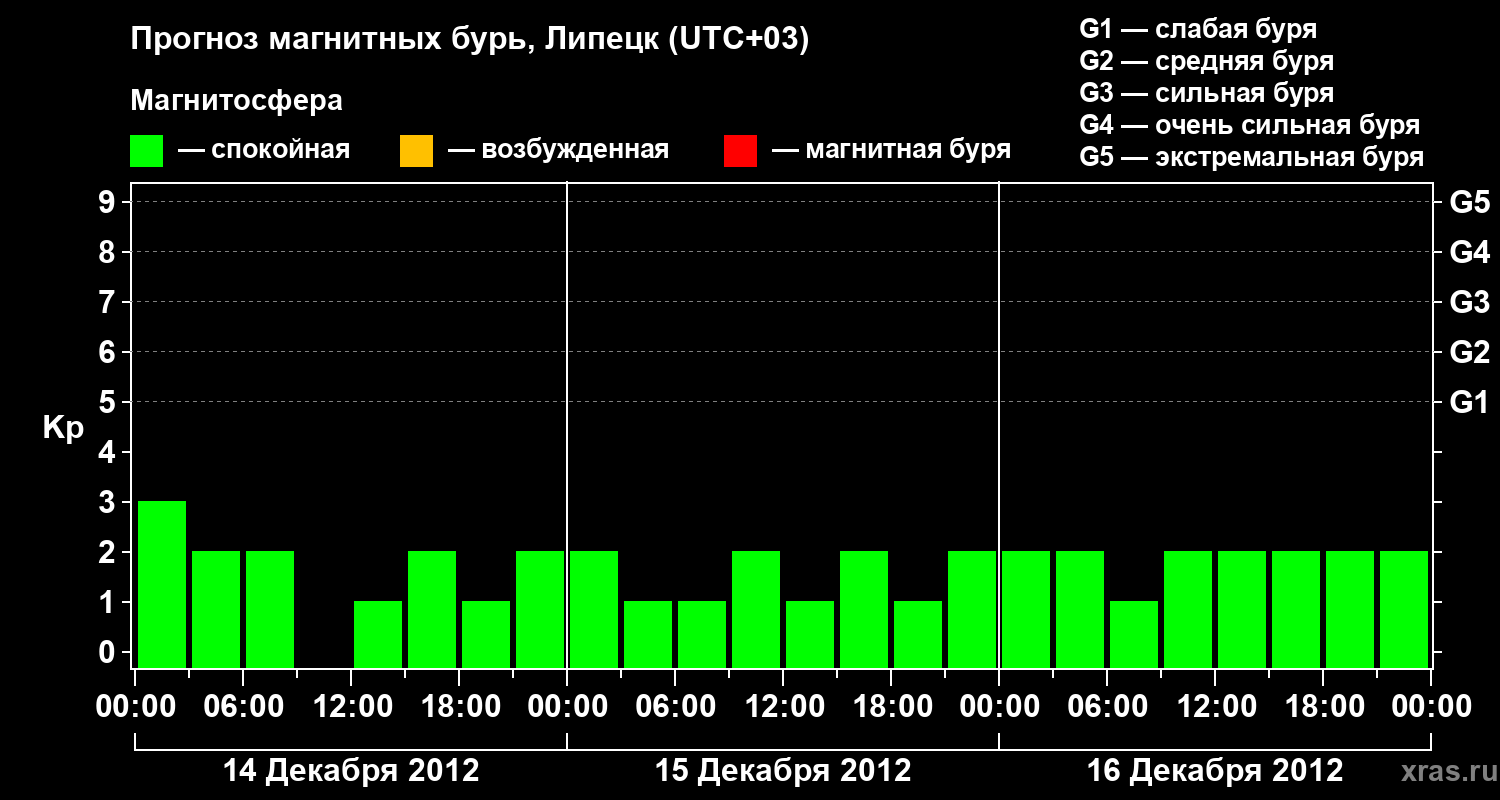 Прогноз магнитных бурь в Липецке на 14 декабря 2012 года