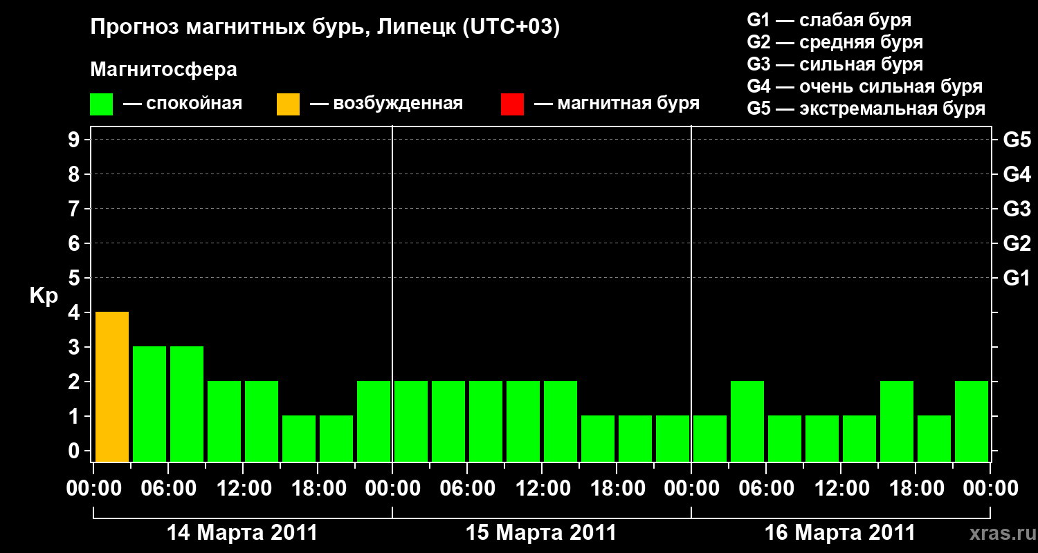 Прогноз магнитных бурь в Липецке — 14 марта 2011 года