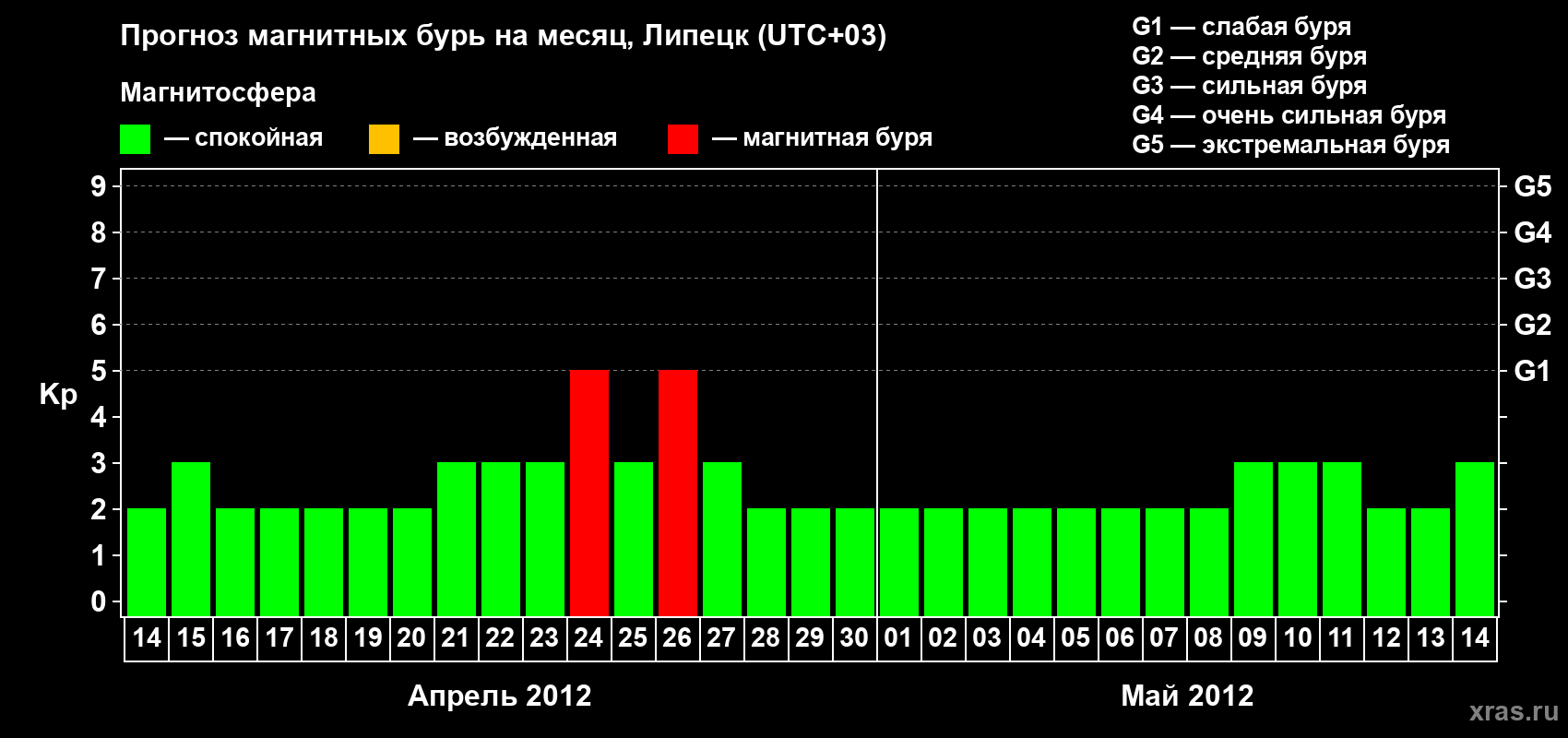Прогноз магнитных бурь в Липецке — 14 апреля 2012 года
