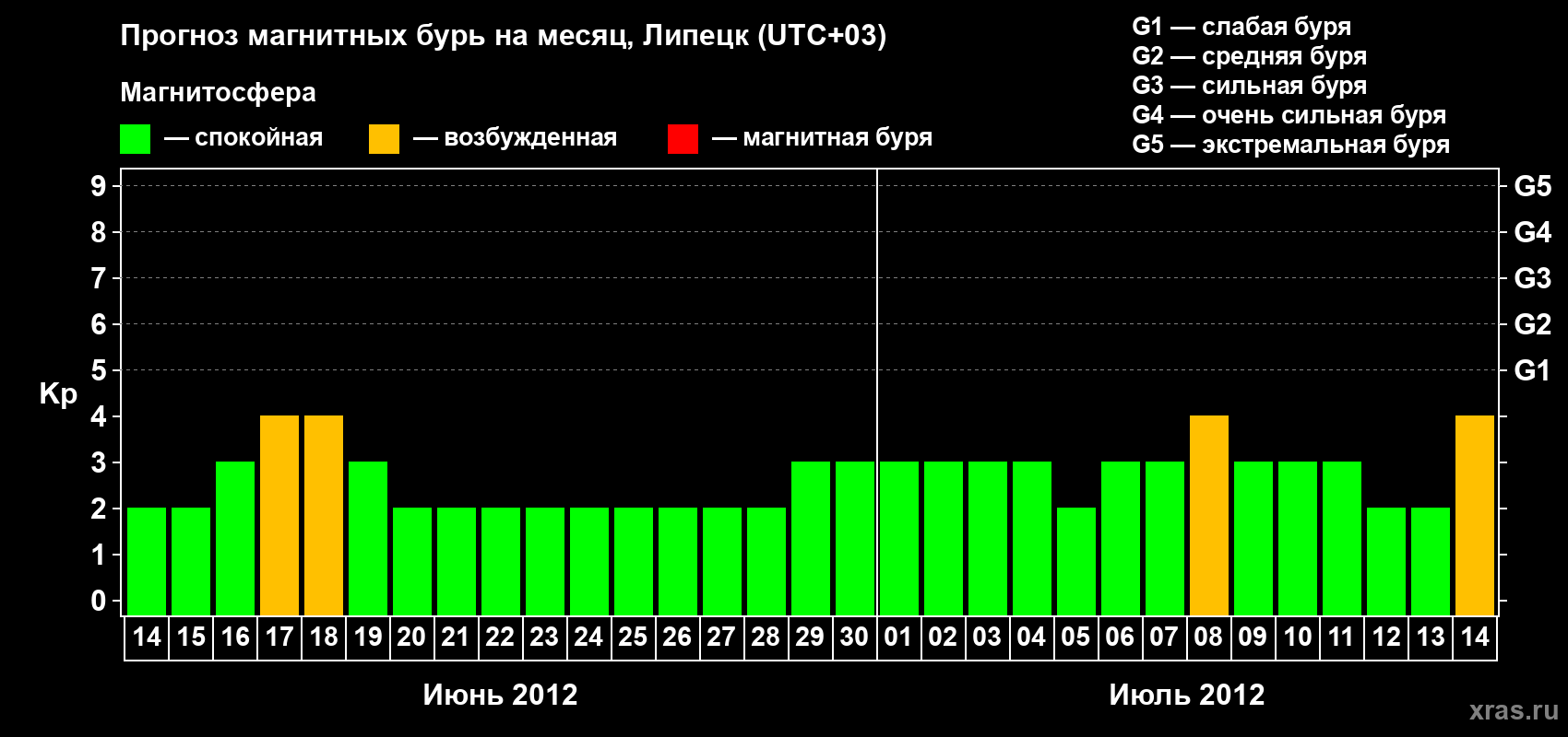 Прогноз магнитных бурь в Липецке на 14 июня 2012 года