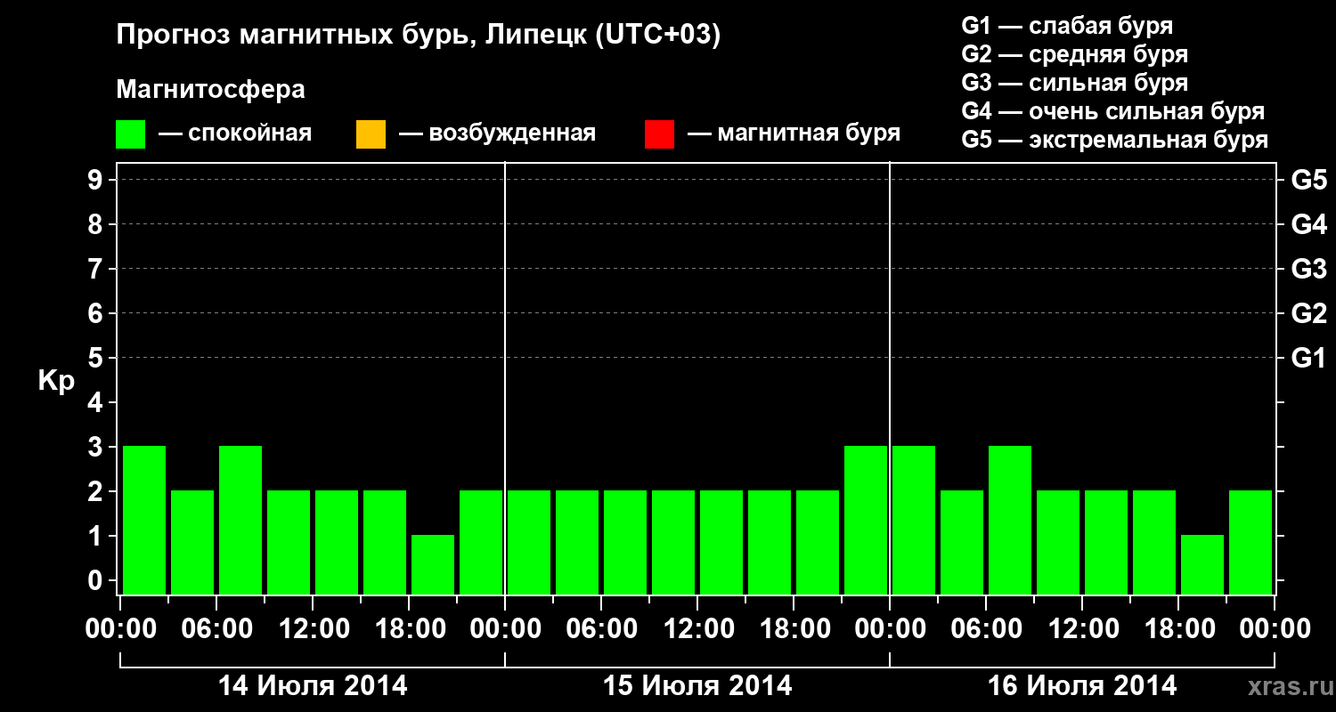 Прогноз магнитных бурь в Липецке на 14 июля 2014 года