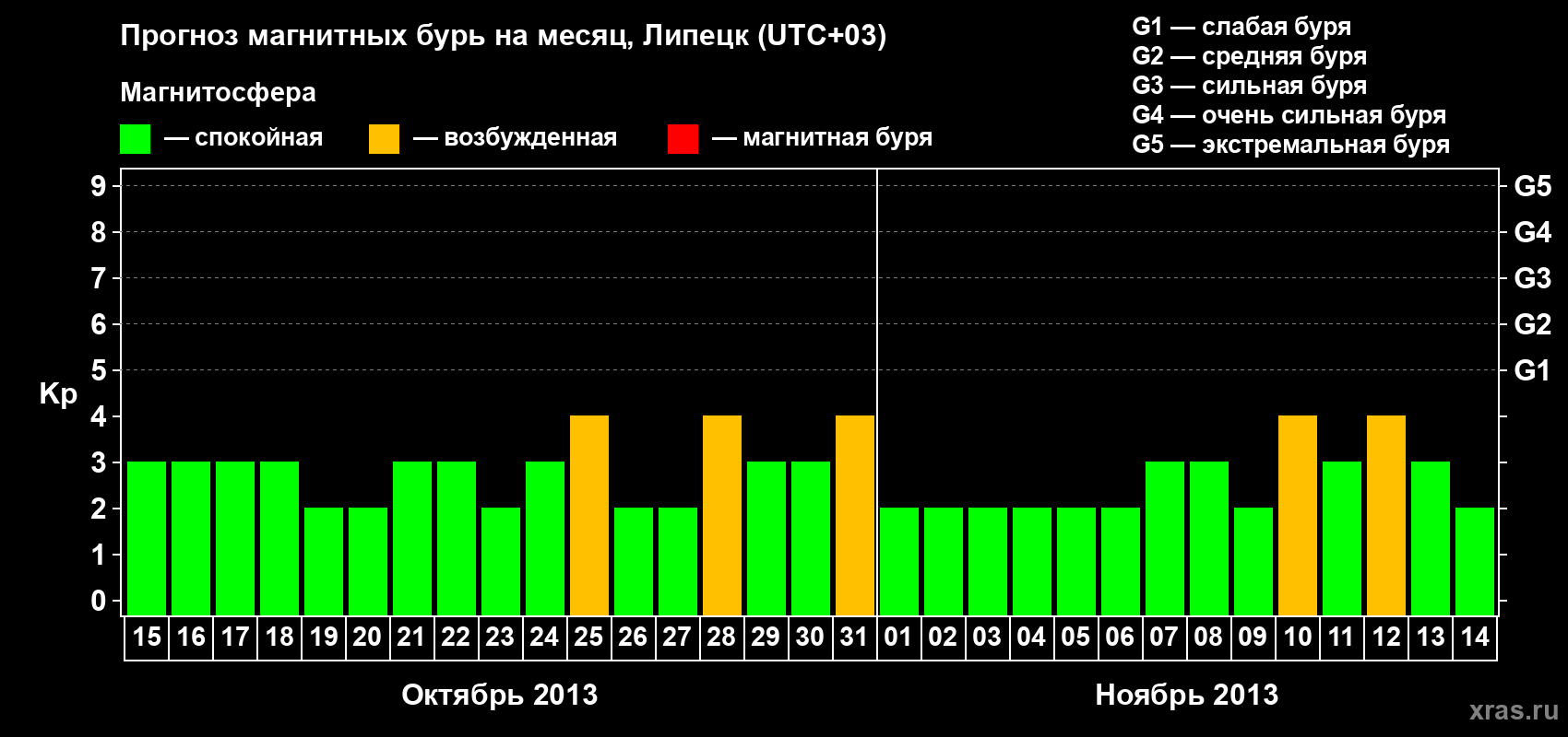 Прогноз магнитных бурь в Липецке — 15 октября 2013 года