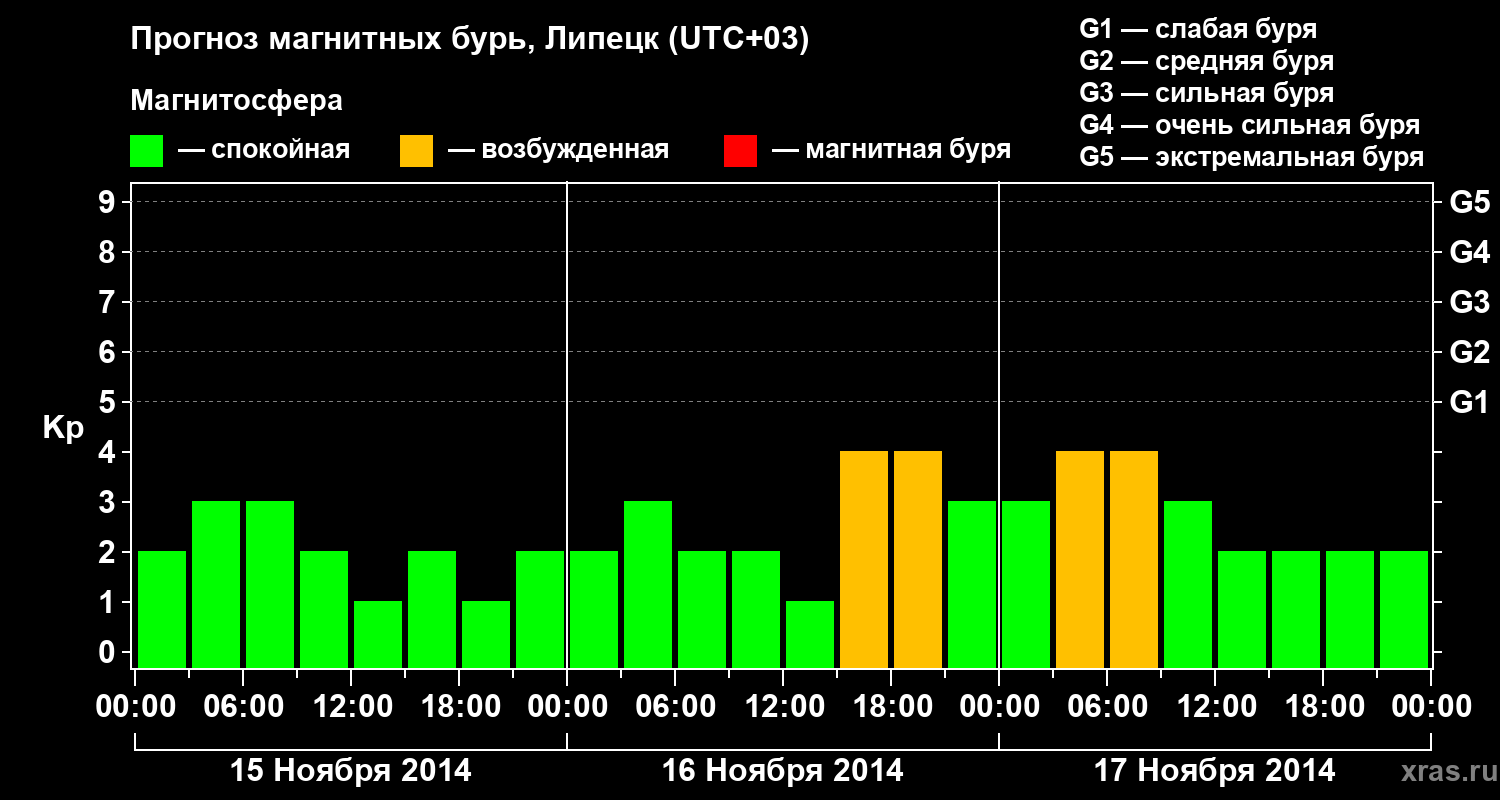 Прогноз магнитных бурь в Липецке — 15 ноября 2014 года