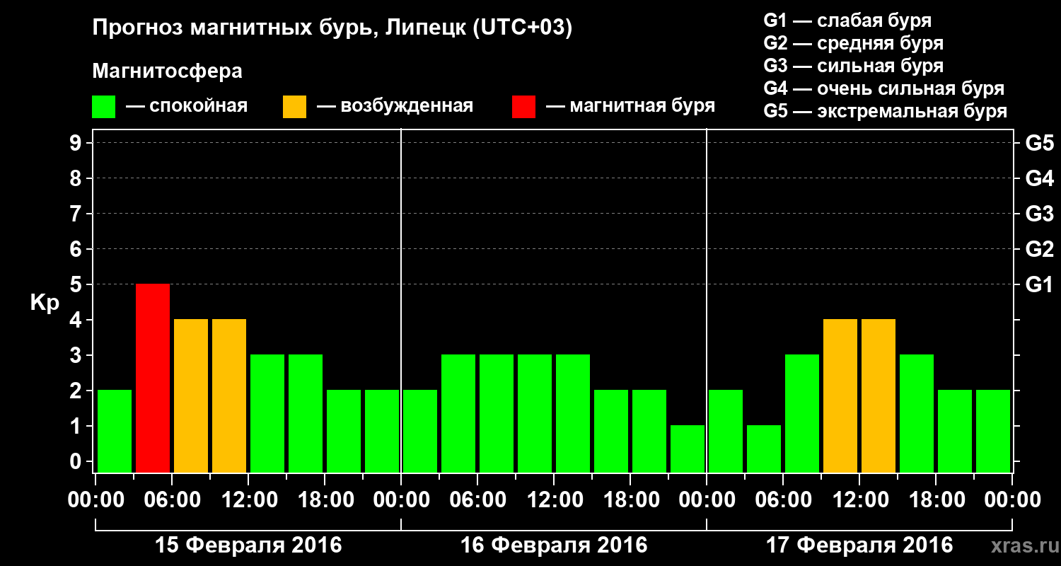 Прогноз магнитных бурь в Липецке — 15 февраля 2016 года