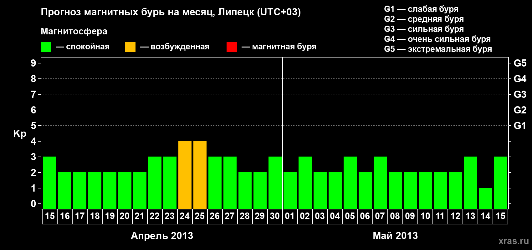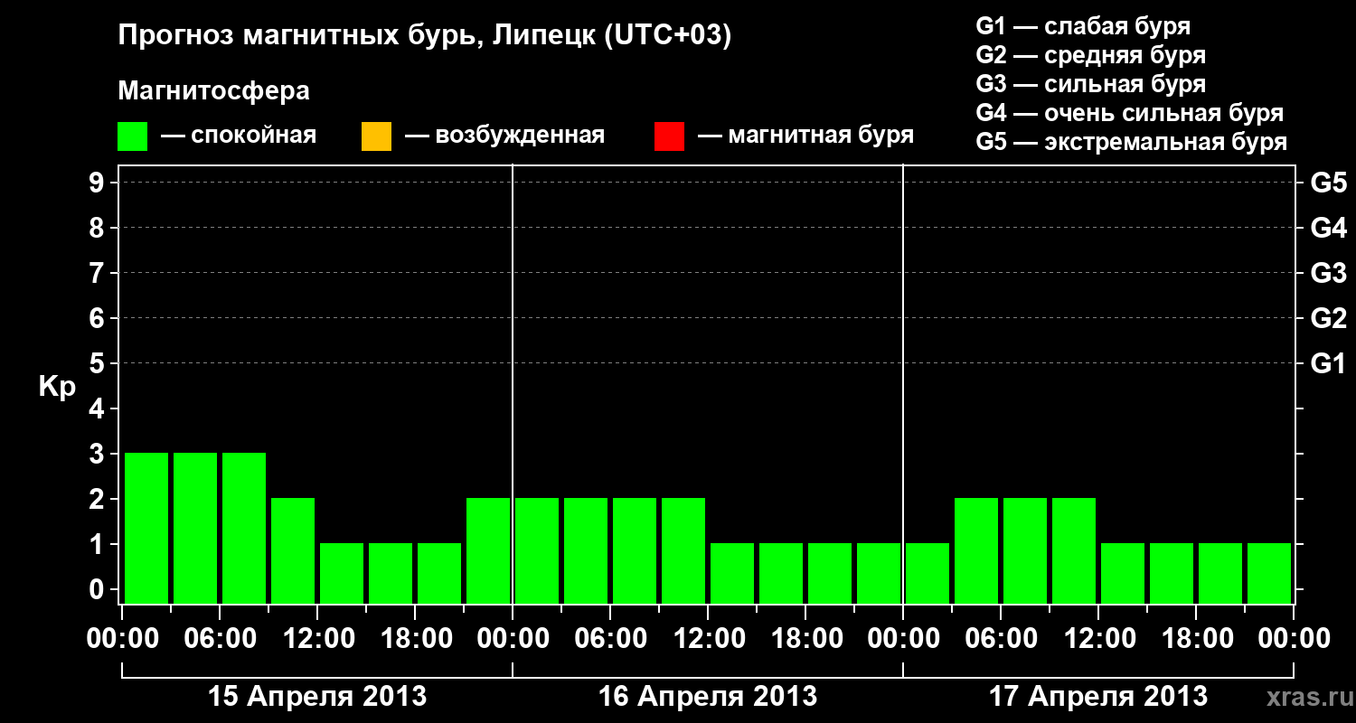 Прогноз магнитных бурь в Липецке — 15 апреля 2013 года