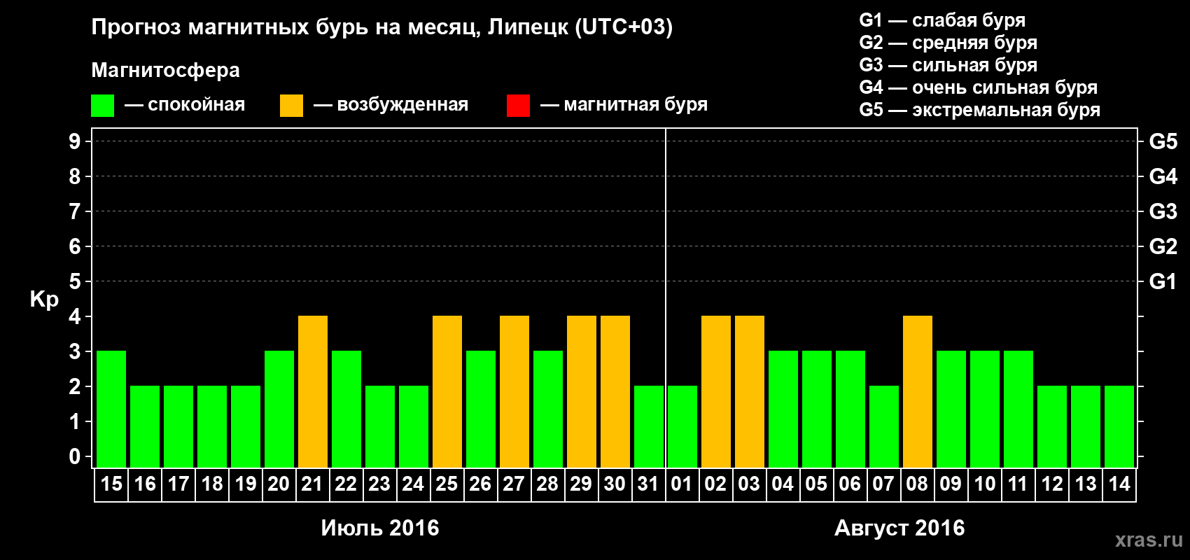 Прогноз магнитных бурь в Липецке — 15 июля 2016 года