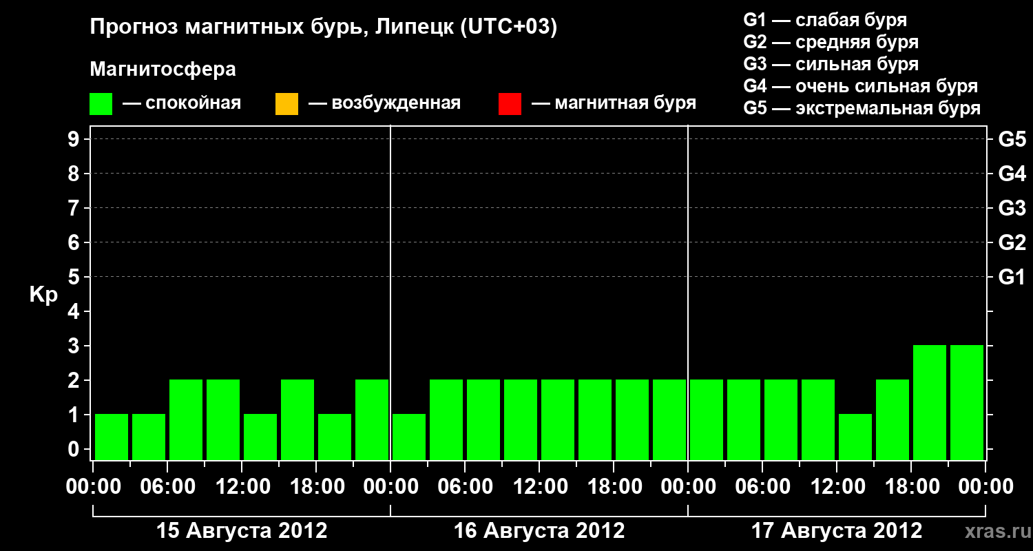 Прогноз магнитных бурь в Липецке — 15 августа 2012 года
