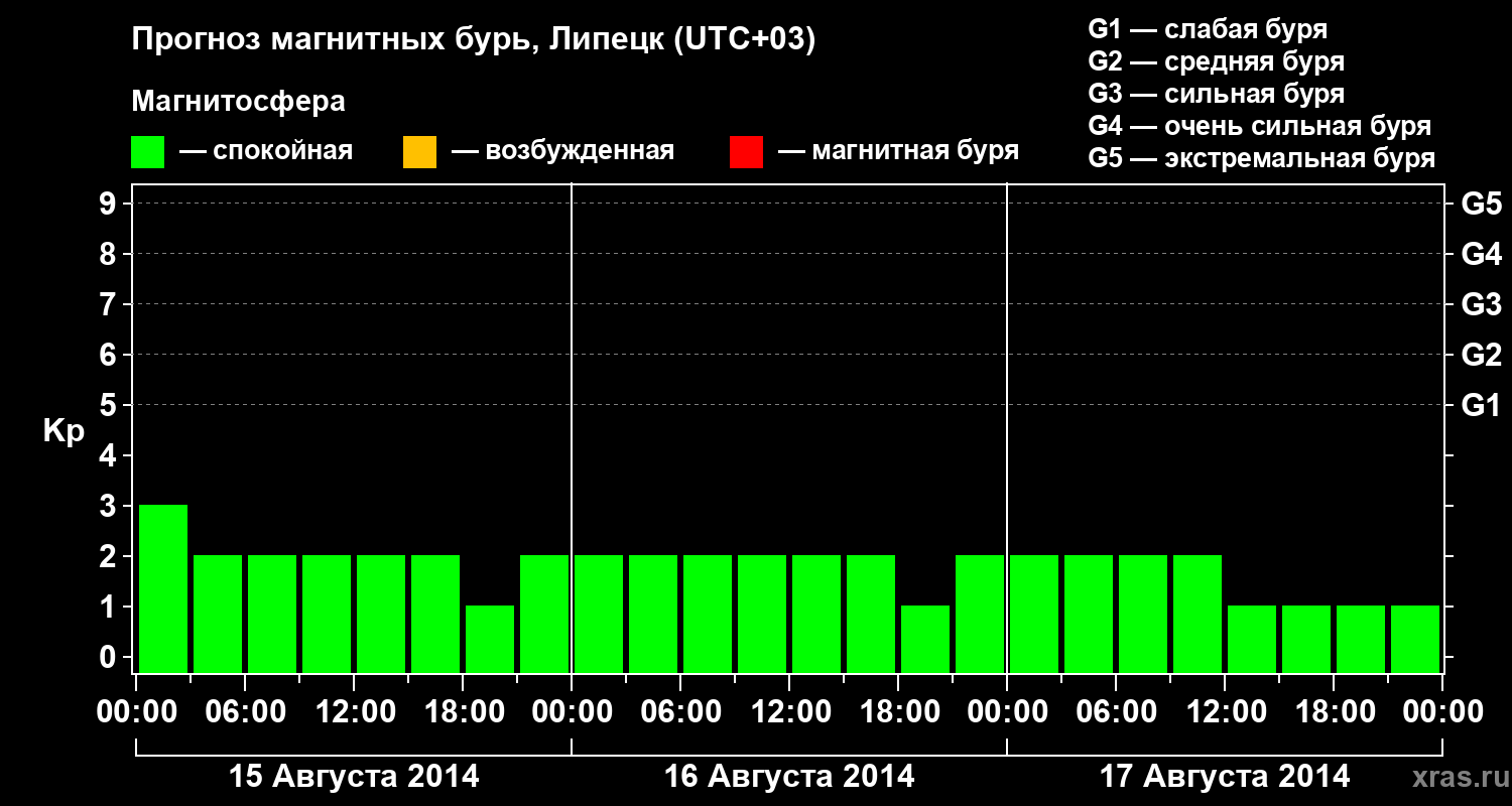 Прогноз магнитных бурь в Липецке — 15 августа 2014 года