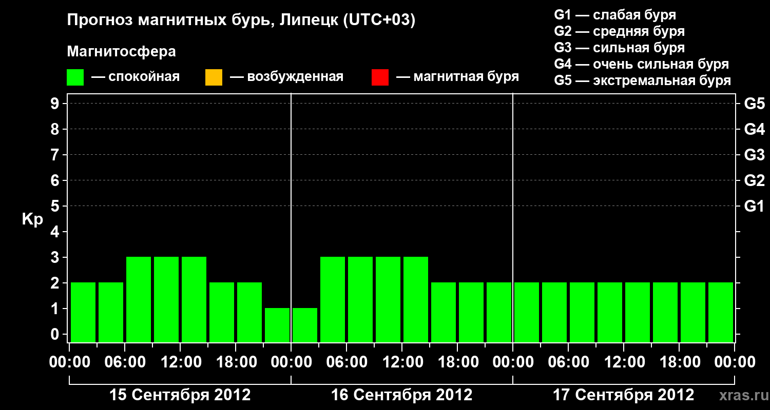 Прогноз магнитных бурь в Липецке — 15 сентября 2012 года
