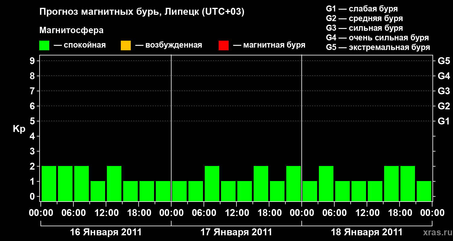 Прогноз магнитных бурь в Липецке — 16 января 2011 года