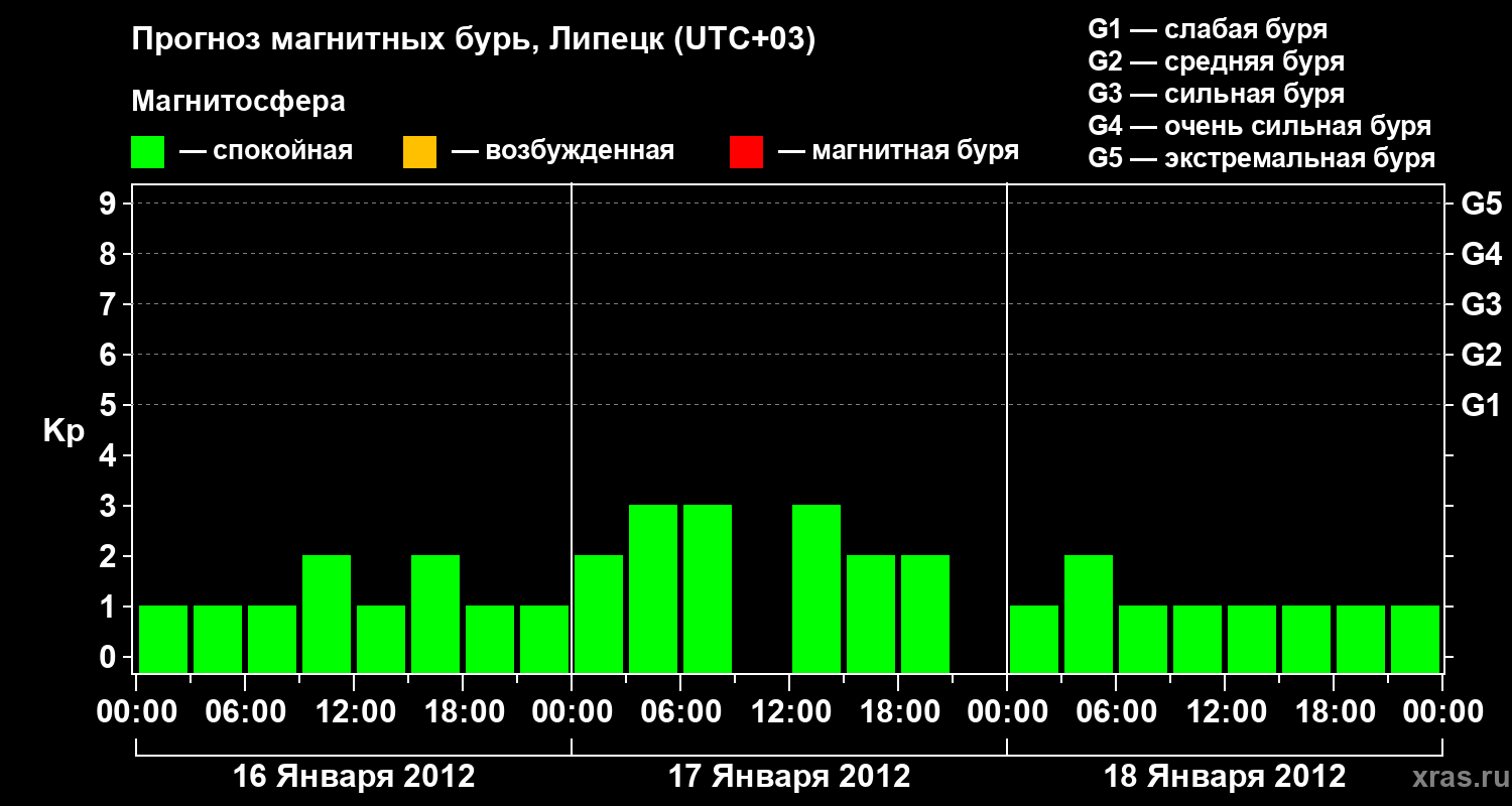 Прогноз магнитных бурь в Липецке на 16 января 2012 года