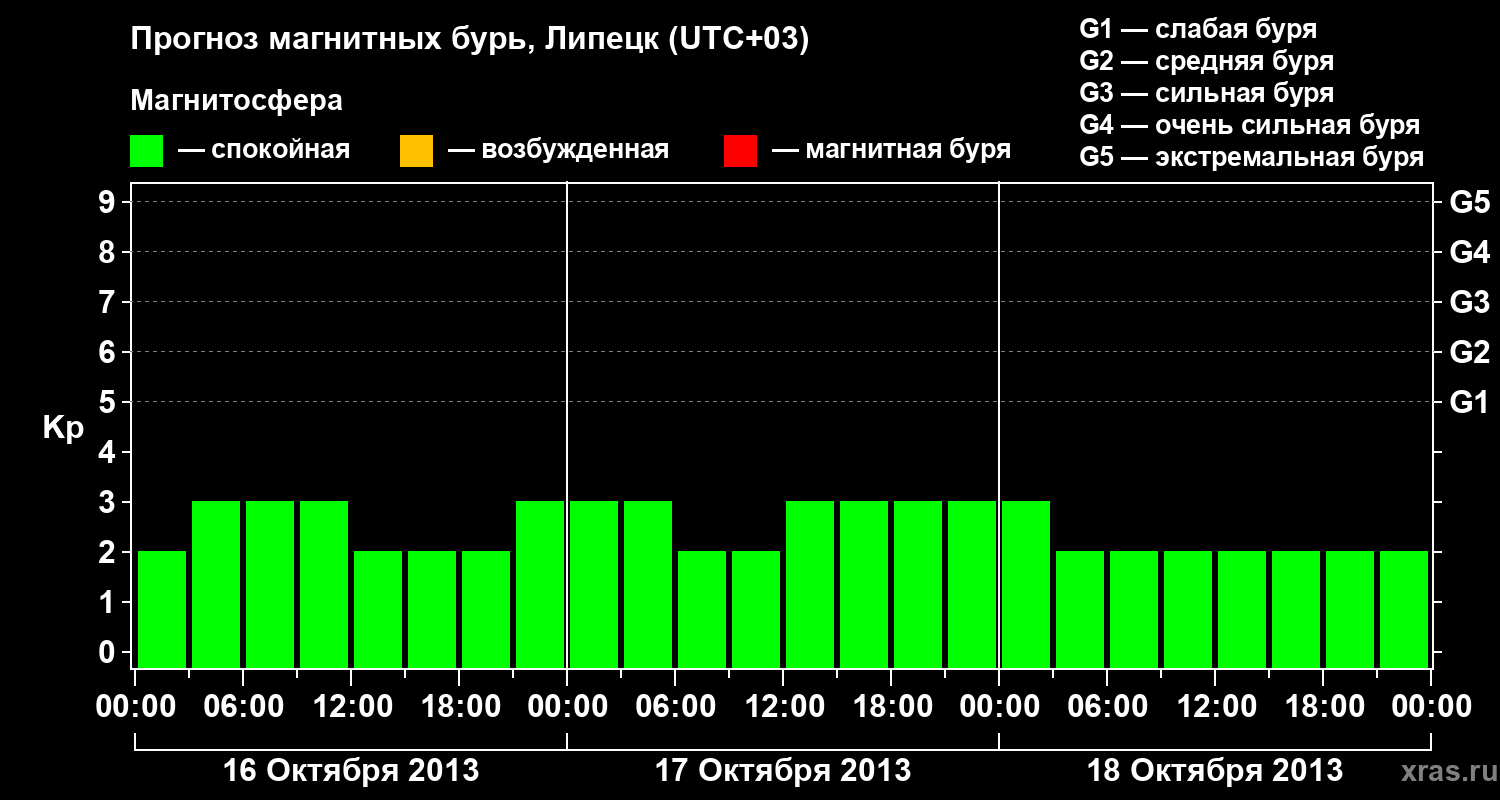 Прогноз магнитных бурь в Липецке на 16 октября 2013 года