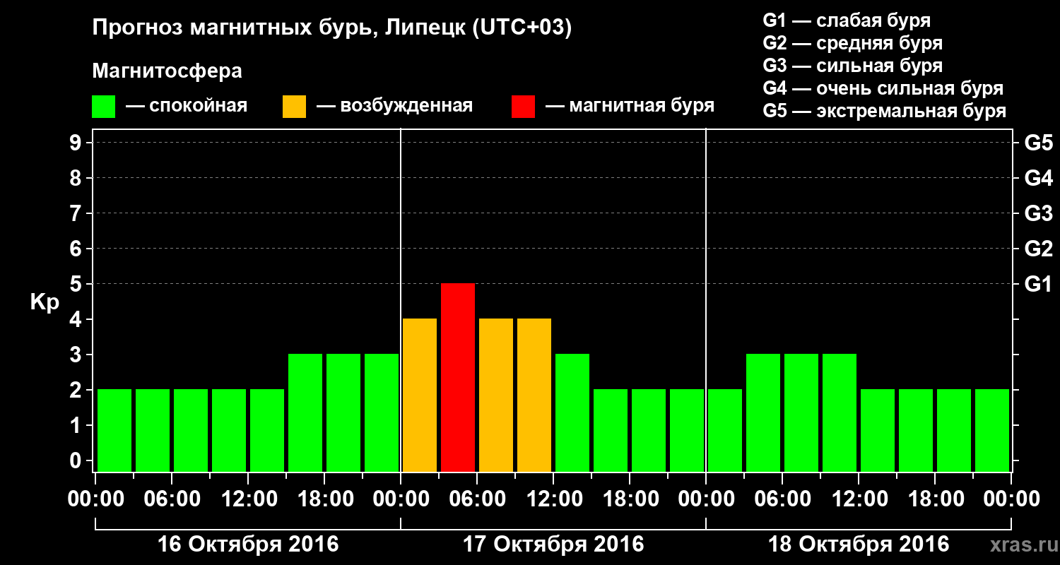 Прогноз магнитных бурь в Липецке — 16 октября 2016 года