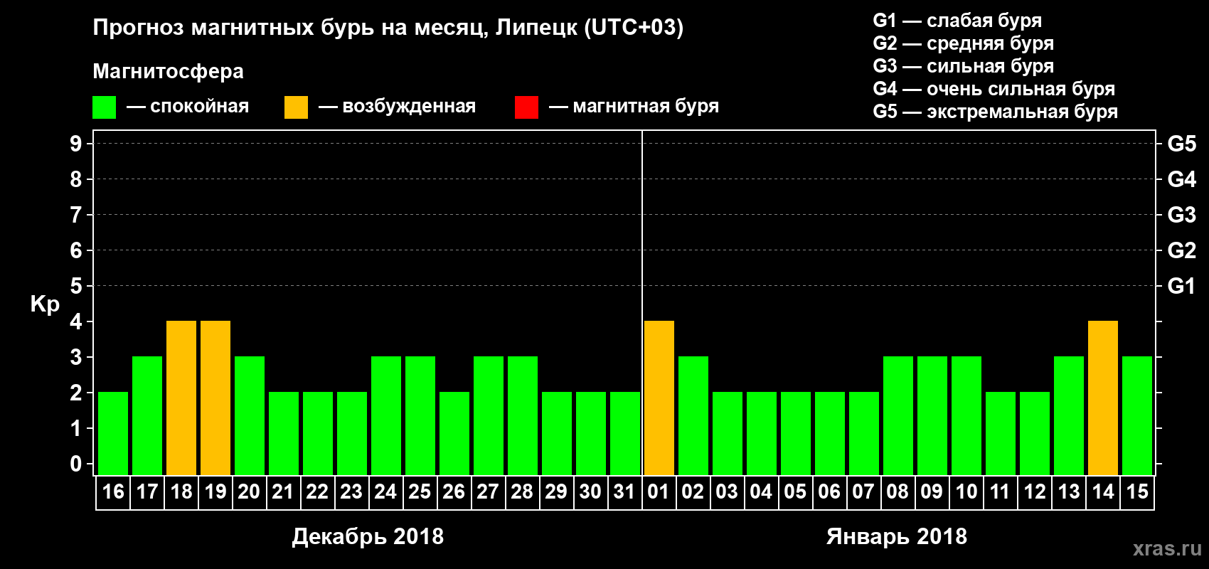 Прогноз магнитных бурь в Липецке — 16 декабря 2017 года
