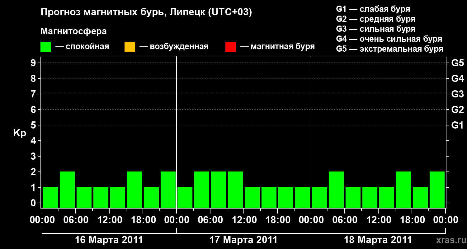 Прогноз магнитных бурь в Липецке — 16 марта 2011 года