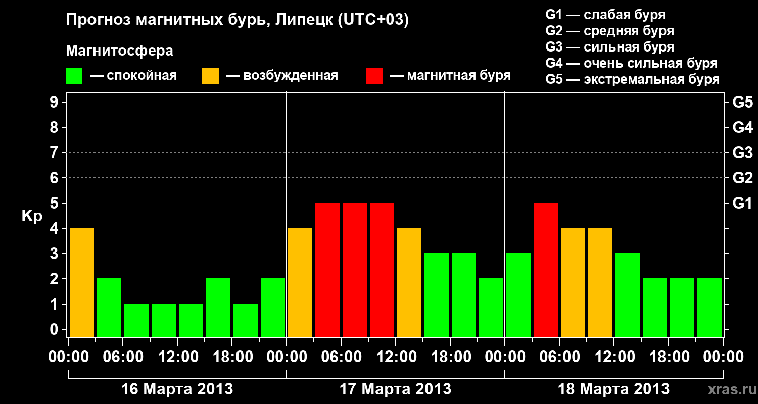 Прогноз магнитных бурь в Липецке — 16 марта 2013 года