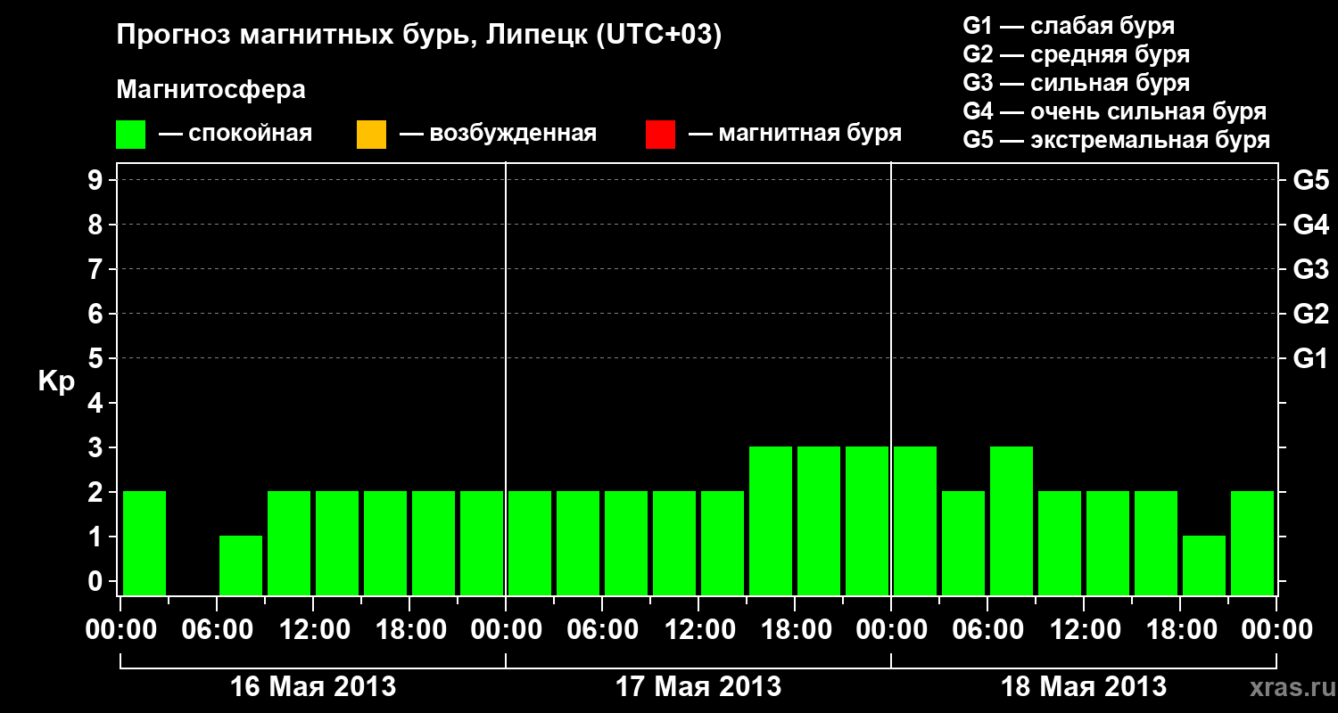Прогноз магнитных бурь в Липецке на 16 мая 2013 года
