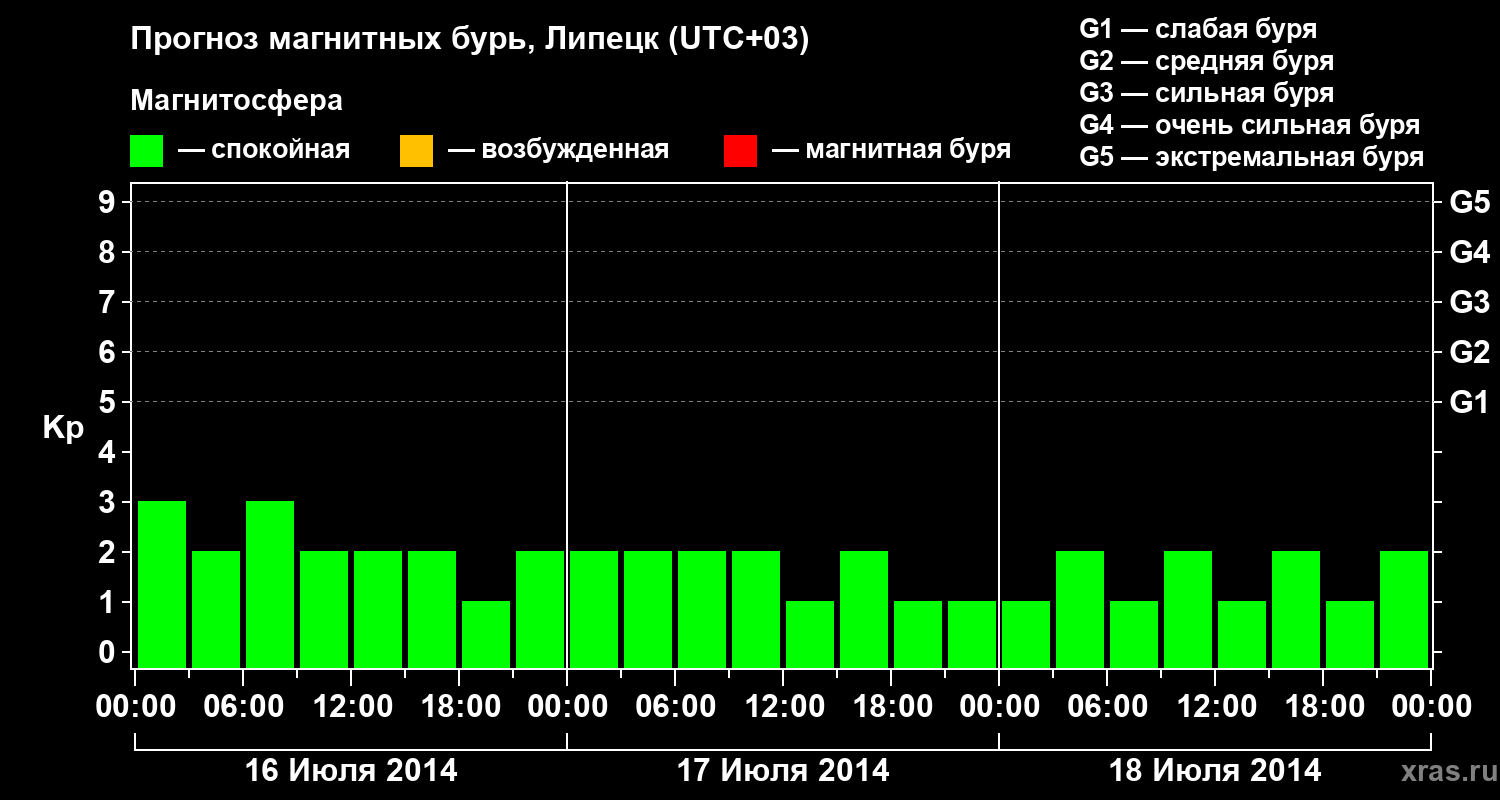 Прогноз магнитных бурь в Липецке — 16 июля 2014 года