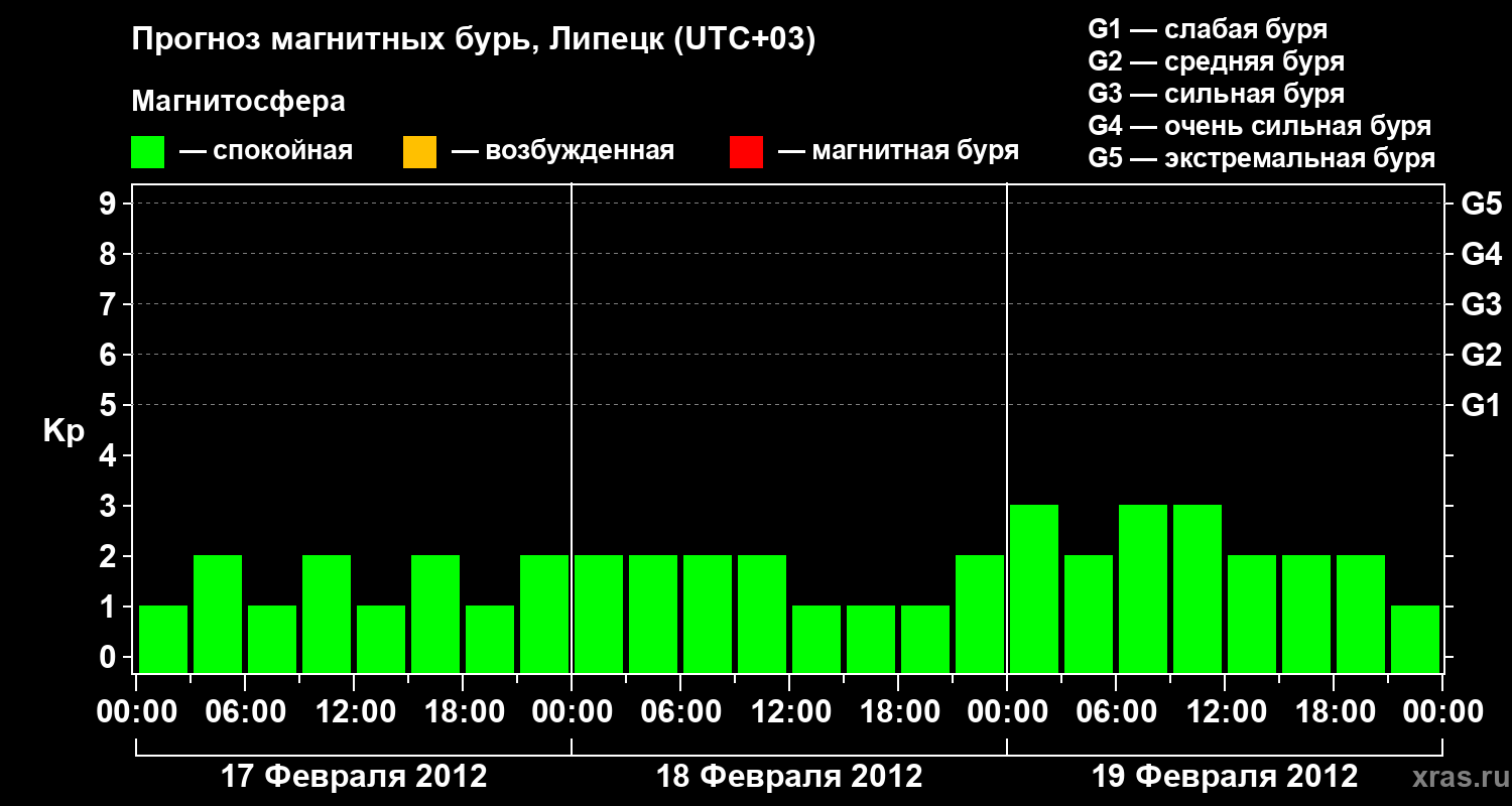 Прогноз магнитных бурь в Липецке на 17 февраля 2012 года