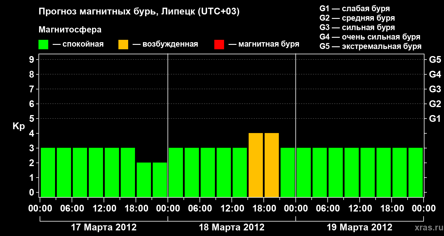 Прогноз магнитных бурь в Липецке — 17 марта 2012 года