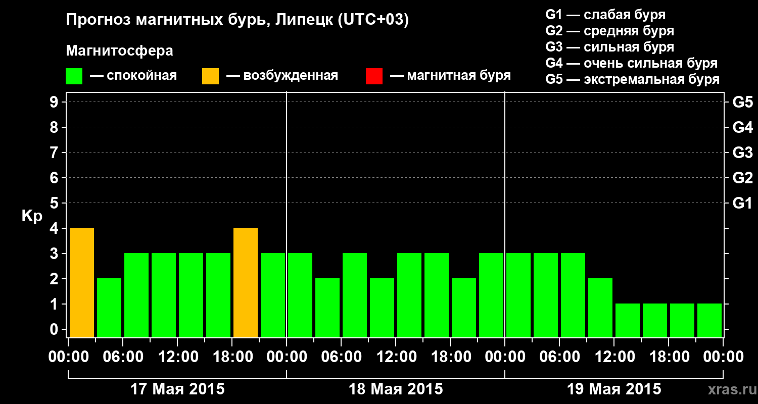 Прогноз магнитных бурь в Липецке — 17 мая 2015 года