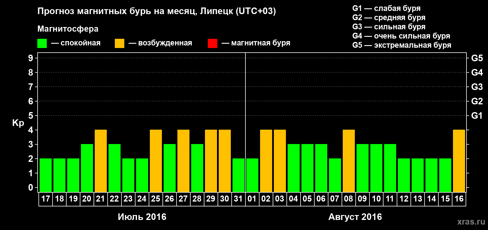 Прогноз магнитных бурь в Липецке на 17 июля 2016 года