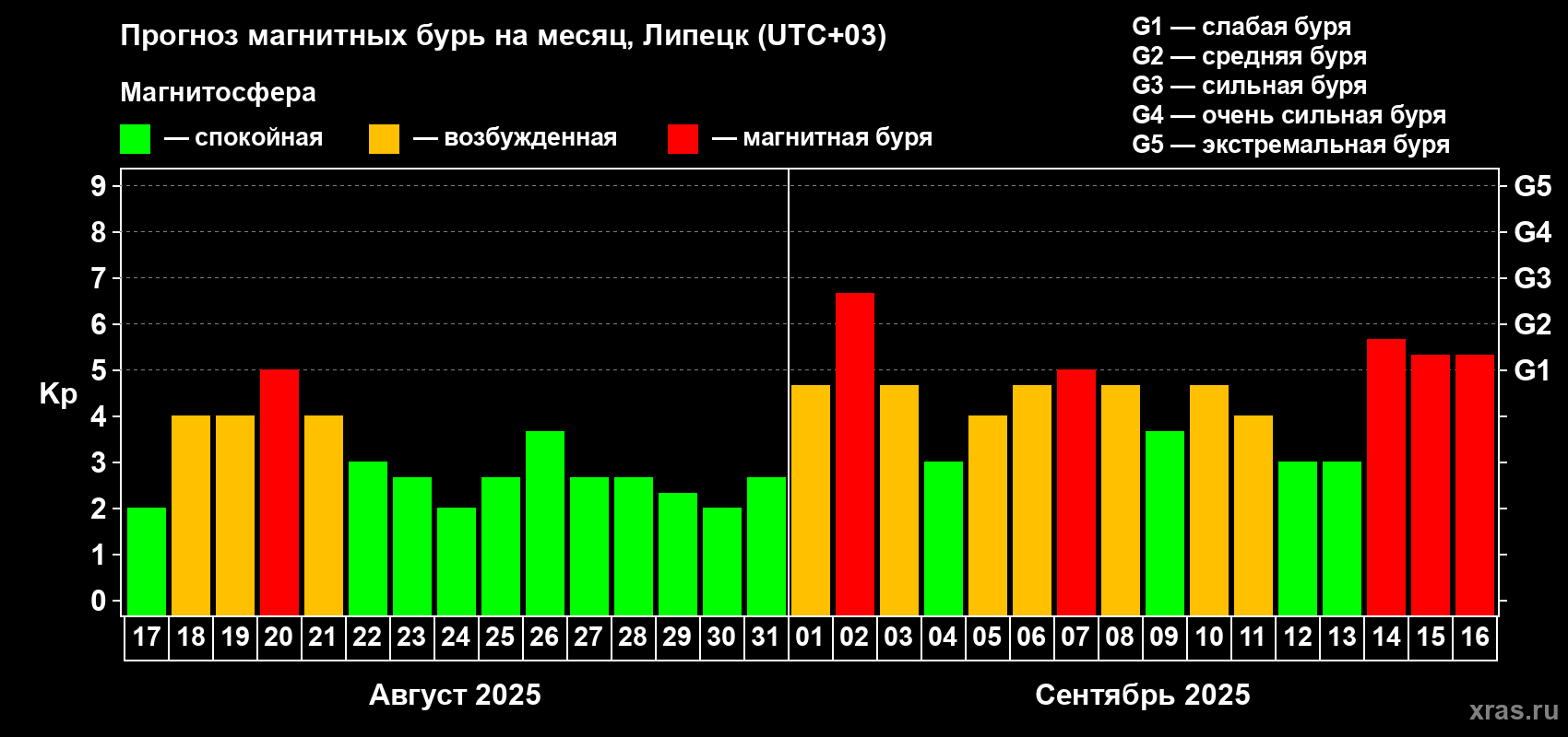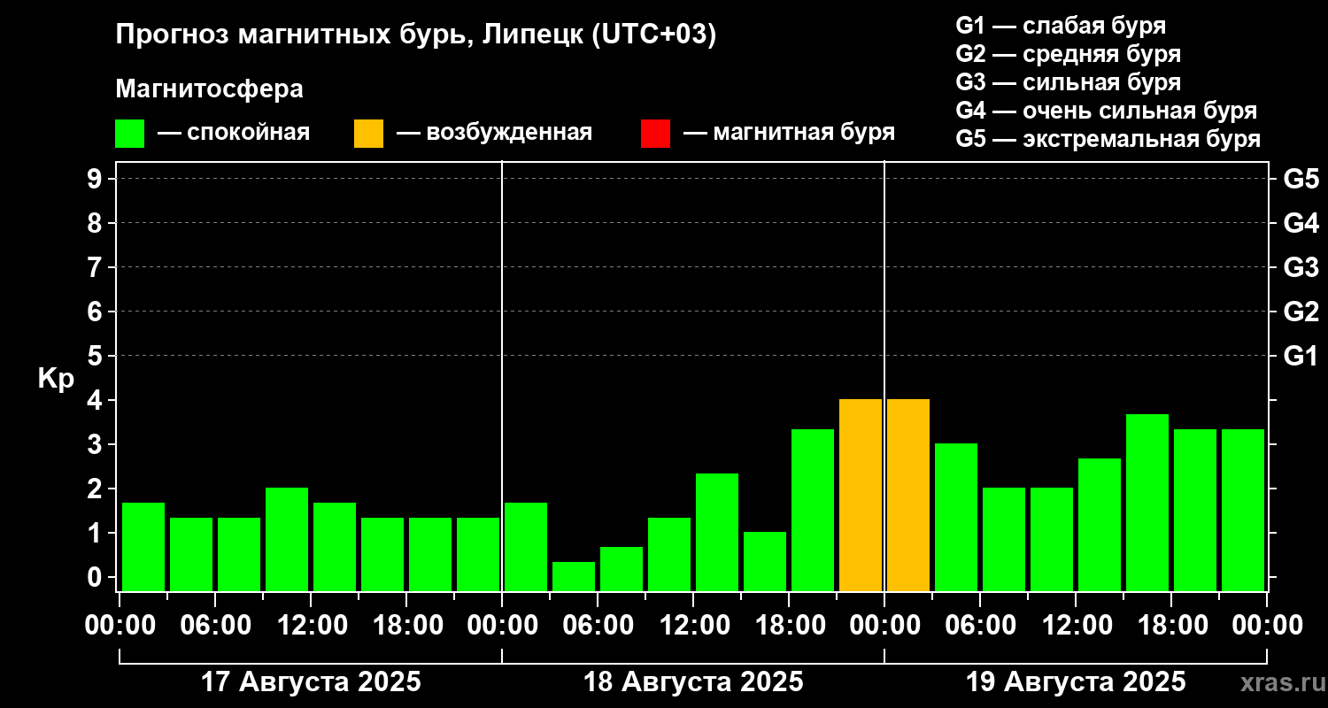 Прогноз магнитных бурь в Липецке — 17 августа 2025 года