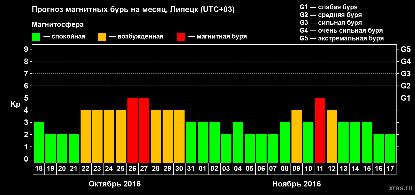 Прогноз магнитных бурь в Липецке на 18 октября 2016 года
